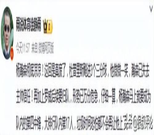媒体人:没想到杨瀚森舆论如此之差,甚至有球迷去开拓者官媒去骂