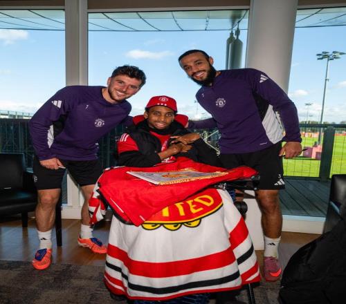 TA记者Andy Mitten表示:“太暖心了!作为曼联基金会梦想日活动的一部分,身患绝症的曼联球迷受邀前往卡灵顿训练基地,与球员见面并观看球队训练。我收到了几位家长的留言,他们都特别开心。”