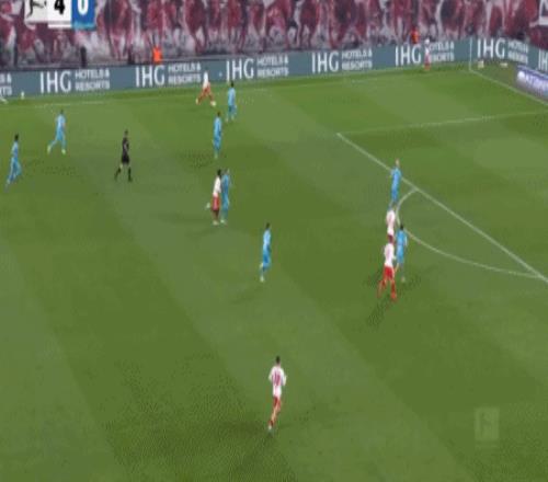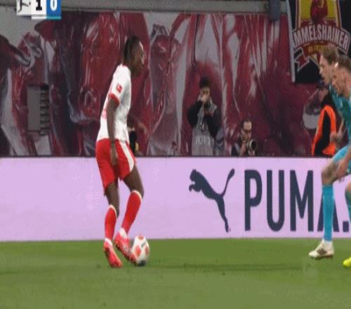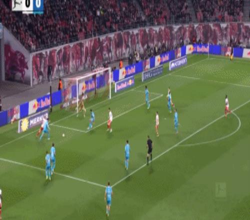 第44分钟,迪奥曼德低传后点,格鲁达推射破门完成双响,莱比锡4-0