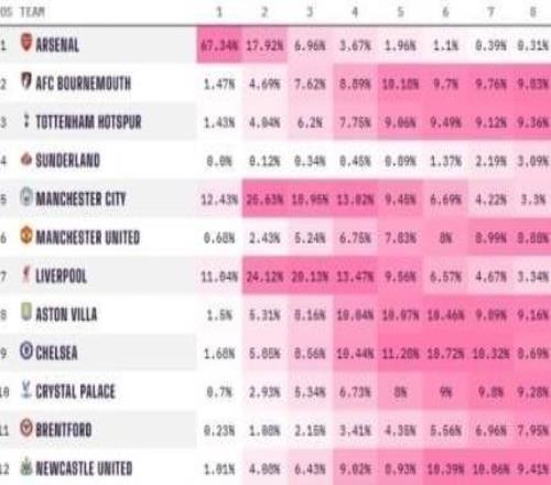 英超最新积分战报阿森纳的冠军梦又悬了!曼城大胜只差榜首2分 -